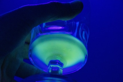 Benötigt wird dafür eine spezielle Lampe, die nur oder fast nur UV abstrahlt. Ansonsten würde das normale Licht den UV-Effekt überdecken.