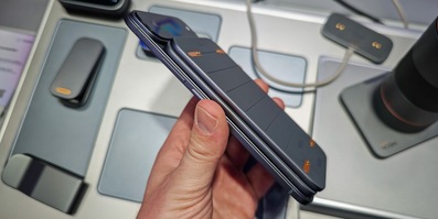 Flach und magnetisch: Am Konzept-Smartphone von Tecno haftet das Zubehör