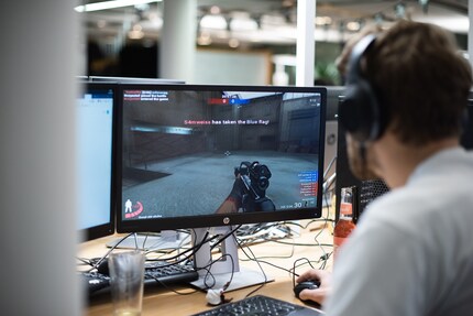 9:25 Uhr: Die einen kommen direkt zur Sache: Kaffee in die Tasse, Kopfhörer rauf und los geht’s. Die anderen stehen zusammen und diskutieren erst mal das Vorgehen. Aus einem Team schnappe ich folgenden Gesprächsfetzen auf: