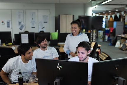 9:30 Uhr: Meine erste Station ist das Team «Chuchichäschtli», das digitec und Galaxus einen schweizerdeutschen Auftritt verpassen will. Zu meiner Überraschung ist mein erster Ansprechpartner im Team kein Schweizer: Krzysztof kommt aus Polen. Auf meine Frage nach der grössten Herausforderung für das Team antwortet er schmunzelnd: «Hast du schon mal ein Wörterbuch für Schweizerdeutsch gesehen? Ich auch nicht. Wir waren uns nicht mal einig, ob man ‘Schwiizerdütsch’ mit einem oder mit zwei ‘i’ schreibt.»