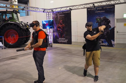Stand 504-506: VR ist an der Zurich Game Show omnipräsent. Zahlreiche Hersteller sind mit ihren Produkten vor Ort und lassen dich ihre Gadgets und Spiele ausprobieren. So kannst du mit einem Handschuh, der deine Fingerbewegungen erfasst, auf Zielscheiben ballern, dich als Künstler versuchen oder dich im VR-Center mit einem portablen PC auf dem Rücken frei in VR bewegen.