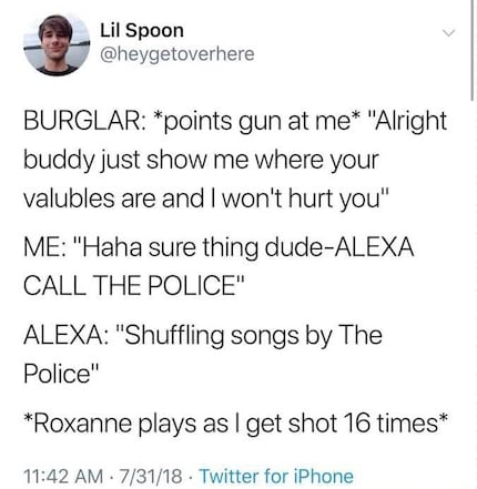 Damit wehrt Amazon präventiv den Abhörskandal ab. Der Konzern darf dir zwar zuhören – wenn du eine Alexa hast, dann bist du laut AGB damit einverstanden –, reagiert ausserhalb eines konkreten Befehls aber nicht. Wenn du von deiner Partnerin verprügelt wirst und Alexa hört zufällig zu, wird kein Angestellter aus Costa Rica die Stadtpolizei Bern informieren, dass du Hilfe brauchst. Aber «Alexa, call the Police» setzt einen Notruf ab.