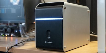 Armin profitiert nun von der Performance der 5700 XT – zumindest theoretisch. Im Vergleich zur internen Vega 56 sollte die Karte je nach Anwendung bis zu 30 Prozent mehr Leistung liefern. Bevor wir einen Benchmark durchführen, arbeitet Armin eine Woche mit aktivierter eGPU. Sein Zwischenfazit: