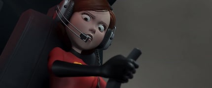 Aber aus den Lautsprechern dringt noch immer nichts als statisches Rauschen. Helen weiss nicht, dass ihr Ziel – eine abgelegene Vulkaninsel, auf der ihr Mann festgehalten wird –, ihr feindlich gesonnen ist. Sie wird nervös und zieht vorsichtshalber ihren Superhelden-Anzug an. Dabei entdeckt sie ihre Kinder, die sich unerlaubt an Bord geschlichen haben. Helen Parr tut und sagt all das, was eine normale Mutter in diesem Moment wohl tun und sagen würde.
