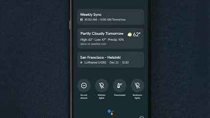 Theoretisch klingt das gut, aber mit der Praxis hat sich Android bisher schwer getan, von app-basiert zu absichtsbasiert zu kommen. Der Google Assistant soll das nun richten. Im Ambient Mode zeigt dir der Google Assistant Funktionen an, die du im Moment gerade brauchen könntest, basierend auf einer Serie von Faktoren, die nur basierend auf dem Video noch nicht ganz erschliessbar sind.