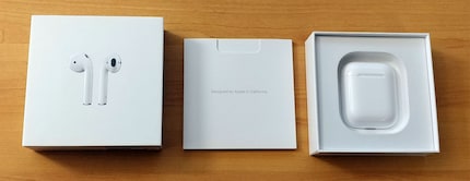 Nett und kompakt: Die Apple AirPodsGut, die Verpackung ist jetzt nicht eines der Hauptargumente für einen Kauf, daher lassen wir das mal. Ich finde es einfach etwas seltsam, dass einige Hersteller eine gigantische Schachtel herstellen und andere praktisch keine Verpackung mitliefern.