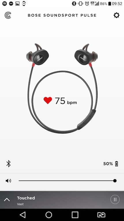 Wirklich viel macht die App aber nicht. Der Hauptbildschirm zeigt mir nur ein Bild meiner SoundSport Pulse an und meinen Herzschlag.