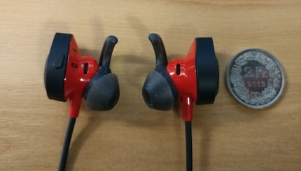 Etwa so gross wie ein Zweifränkler sind sie, die Bose SoundSport PulseTrotz der Grösse sind die Bose SoundSport Pulse nur in einem Fall unbequem: Wenn ich eine Wollmütze im Winter trage. Denn dann drückt die Kappe auf die Stöpsel, die dann ins Ohr drücken und etwas unbequem sind. Ansonsten fällt die Grösse nicht auf und trotz des Volumens sind die Stecker nicht schwer.