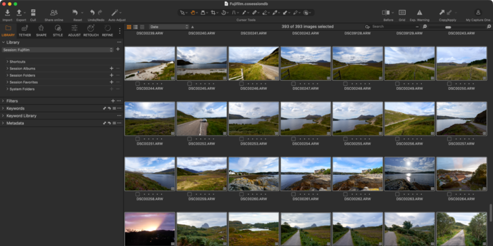 Der Import von 13 000 Fotos dauert von meiner nicht besonders schnellen externen SSD weniger als vier Minuten, was ich in Ordnung finde. Viel länger braucht Capture One für die Erstellung der Vorschaubilder, aber das geschieht im Hintergrund und bei Bedarf. Es stört nicht, dass zu Beginn noch nicht alle Vorschaubilder da sind.