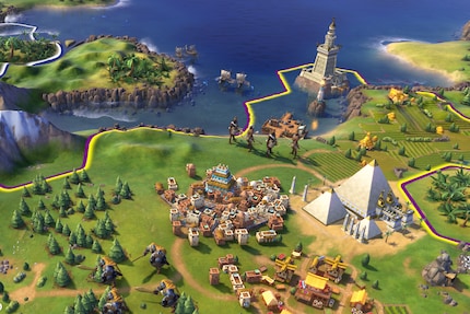 «Civilization 6» wirkt lebendiger – und nicht nur wenn sich die Einheiten bewegen. Während unverbaute Felder gähnend leer sind, sind die Bezirke geschäftig, auf den Farmen weiden Tiere und die Bäume neigen sich im Wind – man muss nur nah genug heranzoomen. Dadurch kann man bereits sehr viele Infos über die Lage einer Stadt herauslesen, ohne ein zusätzliches Menü aufrufen zu müssen.