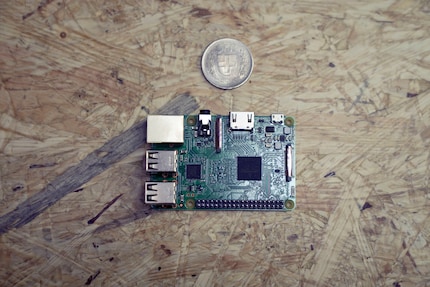Der Raspberry Pi ist kleiner als eine Handfläche und etwa drei oder vier Fünfliber grossDas Bastlerteil einer Charity