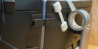Die beiden zweiteiligen Adapter des Screenbuddy sind durch einen Magneten mit Scharnierfunktion miteinander verbunden. Auf den Rückseiten befinden sich Klebefolien. Mit denen bringst du die Buddys an den Monitoren an.