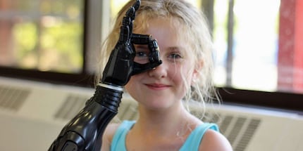 Alle Finger an Tillys Hand sind unabhängig voneinander bewegbar.Open Bionics stellt laut Samantha Payne, COO bei Open Bionics, Prothesen her, die cool aussehen. «Früher wurden Leute, die anders aussehen, gemobbt. Heute bist du wirklich cool, wenn du einen Roboterarm hast», erklärt sie. Einige Menschen seien sogar eifersüchtig auf Träger der modernen Prothesen.