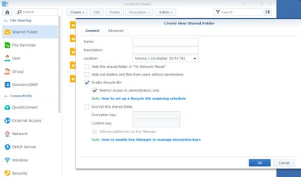 Da ein NAS nach dem initialen Setup aus einem grossen Share besteht – in meinem Fall sind das acht Vier-Terabyte-Platten in einem Synology DS1817+ – musst du zuerst ein Share einrichten, damit deine FTP User nicht einfach auf alle Daten zugreifen können.