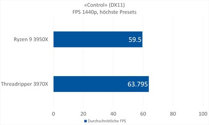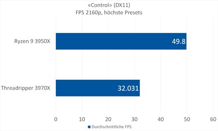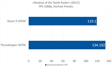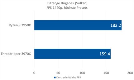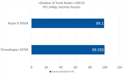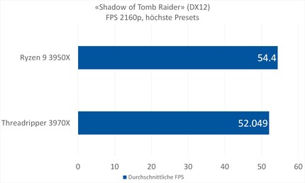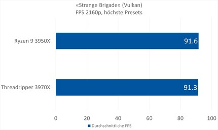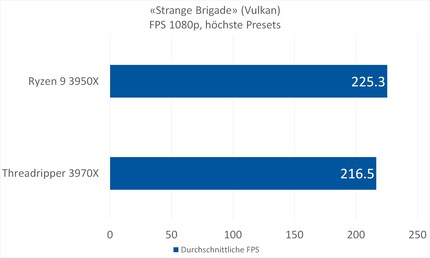 Der Threadripper 3970X und der Ryzen 3950X liefern sich ein Kopf-an-Kopf-Rennen bei den Games. Mal ist der Threadripper schneller, mal der Ryzen. Gross ist der Unterschied aber nie.