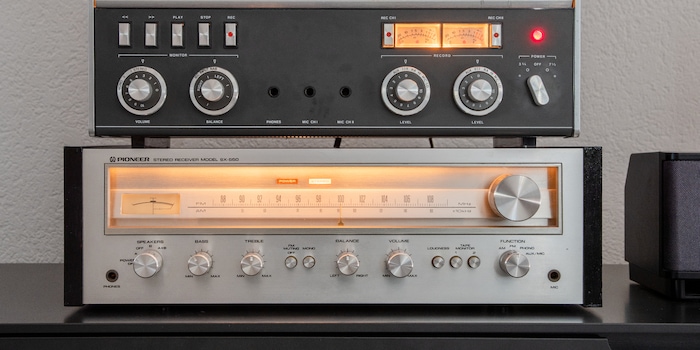 Es ist ein Pioneer SX-550 aus den späten Siebzigerjahren. Ich habe eine Schwäche für Hifi-Geräte aus dieser Zeit. Einfach, weil sie schön aussehen. Silber mag ich lieber als Schwarz – und auch die analogen Anzeigen, etwa ein VU-Meter mit Nadeln, haben es mir angetan. Im Fall dieses Receivers zeigt eine Nadel den Empfang des Tuners an. Die Frequenzanzeige mit der schmalen Schrift wirkt ausgesprochen elegant.