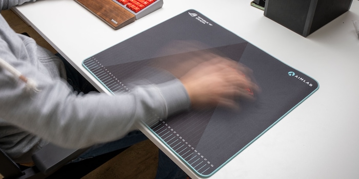 Mir wird schwindelig, wenn ich meiner Maus beim Drehen zuschaue. Sie gleitet derart leicht über das ROG Hone Ace Aim Lab Edition, Teneighties sind keine Seltenheit. Das Mousepad lehrt mich, dass es auch so etwas wie zu wenig Reibung gibt.