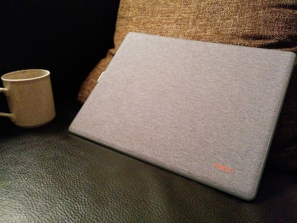Das Bamboo Slate L von Wacom ist ein handliches, sehr schön verarbeitetes Gerät. Die Rückseite ist mit einem grauen Stoff überzogen und die Front mit einem edlen, ledrigen Material.