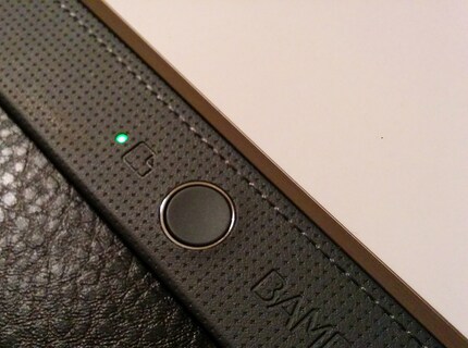 Das Gerät kommt mit einem Notizblock, einem USB-Ladekabel und dem dazugehörigen Kugelschreiber inklusive Ersatzminen daher. Zum Bedienen des Geräts wird lediglich ein einziger Knopf benötigt. Nur ein kleines LED-Lämpchen oberhalb des Knopfes verrät, dass es sich beim Slate L um ein Elektrogerät handelt.
