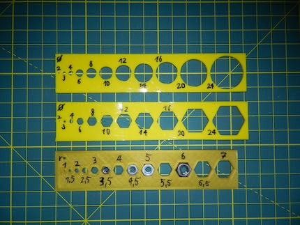 Eine Schablone ist hilfreich, auch um Muttern einzupassen.Das benötigt nur 1 Zeile für die Objekte: