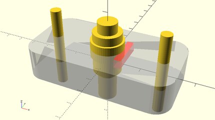 Mit den zusätzlichen zwei kleinen Bohrungen.Nun fehlt nur noch das Loch für die grosse Schraube. Dazu fügen wir die beiden Zylinder (für die Schraube und einen für den Rand) hinzu. Diese sollen aber nicht durchgehend sein, sondern auf 3 mm Material aufliegen. Somit muss die Z-Achse angepasst werden: