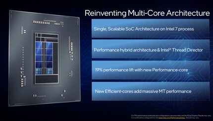 Damit auch immer die richtigen Kerne zum Einsatz kommen, hat Intel den Thread Director entwickelt. Die sogenannte Middleware ist Schnittstelle zwischen Betriebssystem und Software auf der einen und den beiden CPU-Kern-Typen auf der anderen Seite. Der Thread Director analysiert die Arbeitslast und hilft dem Betriebssystem dabei, sie auf die E- und P-Kerne zu verteilen. Damit das richtig funktioniert, empfiehlt Intel Windows 11.