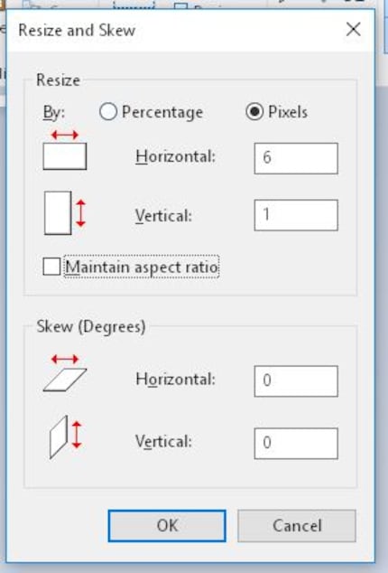 Nun musst du dein ganzes künstlerisches Talent aufwenden. Auf sechs Pixeln. Wenn du Paint aufmachst, dann hat das Programm schon ein leeres, virtuelles Blatt Papier zum Kritzeln parat. Wir müssen das zuerst verkleinern.