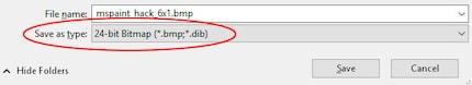 Beachte die 24bitDer Dateiname ist egal. Ich nenne das Bild mal «mspainthack6x1.bmp»