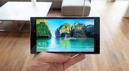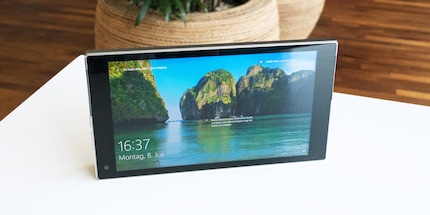 Das IPS-Display mit 1920 x 1080 Pixel Auflösung gefällt mir gut und ist insbesondere sehr genau beim Bedienen mit den Fingern. Im Desktopmodus kann ich selbst die kleine Ecke unten rechts auf der Taskleiste neben dem Benachrichtigungssymbol problemlos antippen. Dennoch werde ich bei Windows 10 nicht warm, wenn es um die Touchbedienung geht. Was mich am meisten nervt: Wenn ein Textfeld aufpoppt, wird die Bildschirmtastatur nicht automatisch eingeblendet. Das kriegt Microsoft selbst im Tabletmodus nicht hin. Eine Option dazu suche ich bisher vergebens. Du musst immer ein zweites Mal tippen, um die Tastatur zu öffnen.