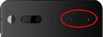 Die magnetischen Konnektoren am PH-1Die zwei Punkte sind Magnete, an denen modular verwendbare Aufsätze angebracht werden können. Bisher hat Essential eine 360-Grad-Kamera angekündigt, doch andere Module sollen folgen.