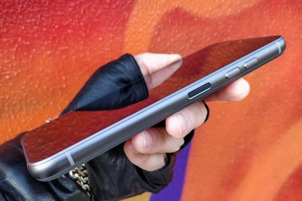 Auf der rechten Seite befinden sich die Knöpfe für die Lautstärkeregelung und die Taste zum Einschalten mit integriertem Fingerabdruckscanner. Alle drei haben einen guten Druckpunkt und sind angenehm zu erreichen. Unten befindet sich der USB-C-Anschluss; einen Kopfhöreranschluss gibt es nicht mehr. Das Gerät ist spritzwassergeschützt (IP54) und kann dadurch auch bei Regen bedient werden. Wasserdicht ist es aber nicht.