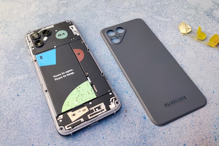 Alle anzeigenDer zentrale Punkt der Fairphone-Vision: Du kannst das Gerät alleine zu Hause reparieren. Dafür wurde es größtenteils modular gebaut. Die rutschfeste Rückseite, die komplett aus recyceltem Plastik besteht, hebelst du mit Hilfe des Fingernagels hoch. Darunter sitzt der Akku, den du mit bloßer Hand herausnimmst. Für die anderen Module wie Kameras, Lautsprecher, Hörmuschel, USB-Anschluss oder das Display ist ein kleiner Kreuzschlitz-Schraubendreher nötig (Größe 00).