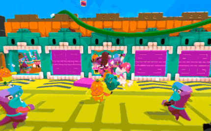 «Fall Guys» erfordert Geschickt und mindestens so viel Glück. Wenn du in einem Strom aus betrunkenen, bohnenähnlichen Figuren auf ein Feld aus rosa Schleim und drehenden Dildos zurennst, verlierst du selbst mit dem auffälligsten Outfit den Überblick. Dann hoffst du nur noch, dass der rosa Pummel, der unten tausend kleiner Füsse zertrampelt wird, nicht du bist.