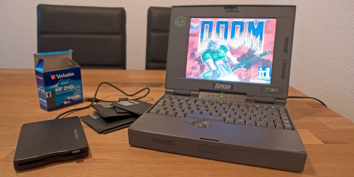 Endlich ist es Zeit für Games. Ich kann mich kaum entscheiden, welche Spiele ich als erstes installieren, respektive kopieren soll. Ich beginne mit solchen, die auf eine bis drei Disketten passen. Voll easy, so kann ich mir in der Zwischenzeit, und davon ist reichlich vorhanden, Gedanken machen, wie ich grosse Dateien auf das Notebook bringe. Doom 2 hat beispielsweise eine WAD-Datei, welche über 14 MB gross ist.