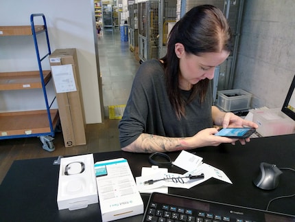 «Ich frag mich, wie viele Schritte ich am Tag gehe», sagt mir Melanie Lee, Customer Service Representative in der Zürcher digitec-Filiale. Ihr Job ist es, deine Bestellung aus dem Lager zu holen und dir mit deinen neuen Computerteilen oder deinem Staubsauger oder deinem neuen wasweissich eine Freude zu machen. Die Deutsche mit dem tätowierten Arm schätzt, dass sie einige Kilometer zurücklegt.