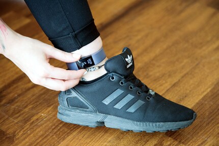 Melanie untersucht, ob sich die Schrittzahl mit Tracker am Fuss verändertApropos Schritte: Wieder wandert das Gerät vom Handgelenk an die Ferse. Der Test zeigt das selbe Resultat wie schon mit dem Flex. Am Fuss ist die Schrittzahl massiv höher als am Handgelenk. Bei der Schilderung des Tests mit dem Fussgelenk muss Melanie lachen: «Mit dem Ding am Fuss seh ich fast so aus, als ob ich eine dieser Hausarrest-Fussfesseln trage.»