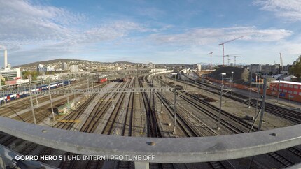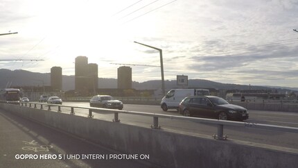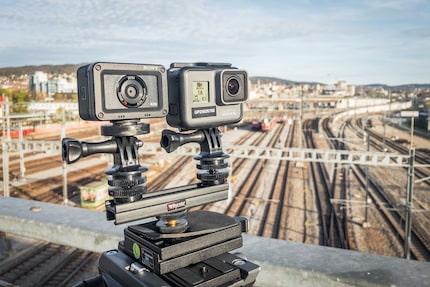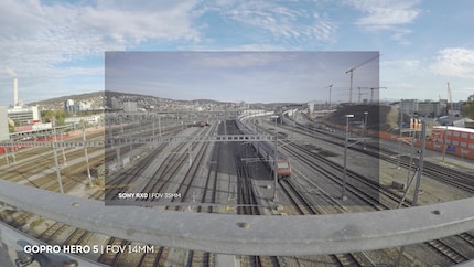 Um einen möglichst identischen Bildausschnitt zu erhalten, wurden die beiden Kameras direkt nebeneinander befestigt- UHD der Sony RX0 viel schärfer als jenes der GoPro Hero 5 (jedoch mit Recorder)