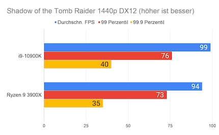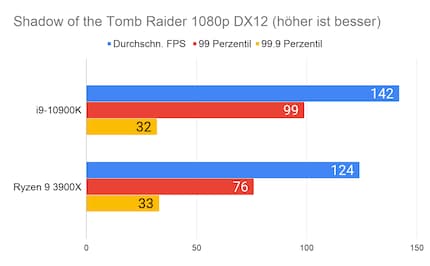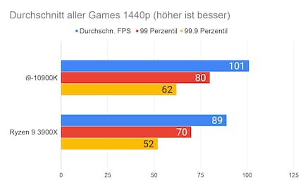 Bei den Spielen liefere ich euch neben den durchschnittlichen FPS auch die Frametime in Perzentilen und zwar 99 und 99.9.