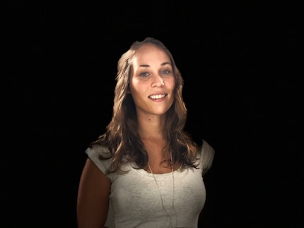 Stephanie Tresch im Stage Light. Ihre Frisur wird künstlich etwas gestutzt. Der Hintergrund ist der selbe wie vorhinWir dachten, dass das bei Männern vielleicht besser funktioniert, da kürzere Haare. Deshalb ein Test mit Product Manager Ludo Penning de Vries mit Bürohintergrund und der Selfie-Cam.