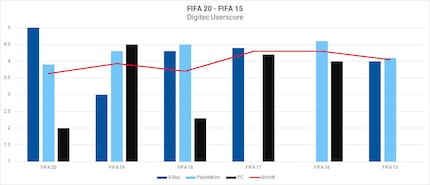 Die User des Review-Aggregators «Metacritic» sind bekannt dafür, ihren Unmut über misslungene Games und Filme mit Tiefstnoten kundzutun. Das ist bei Fifa nicht anders. Nur gerade Fifa 15 wurde überdurchschnittlich bewertet, wenn auch knapp mit 5.1 von 10 im Schnitt. Fifa 20 kriegt bei den Metacritic-Usern eine gnadenlose Abreibung: Note 1.1 gibt es für das Fussballgame. Tiefer geht eigentlich gar nicht.