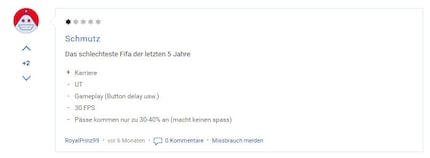 Was ist dran an der Meinung von royalprinz99? Ist Fifa 20 tatsächlich das schlechteste Fifa der letzten fünf Jahre oder ist das nur eine weitere Meinung eines Internet-Trolls? Das lässt sich ziemlich fundiert feststellen. Einerseits können wir eure Bewertungen zusammenfassen, sofern genügend Daten vorhanden sind. Andererseits geben Bewertungen der Fachpresse Aufschluss darüber, ob das Game auch schlecht bewertet wurde und es sich nicht nur um eine einzelne subjektive Meinung handelt.