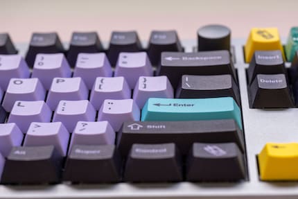 Falls du dich für Switches und Keycaps interessierst: Ich verwende einen geschmierten Frankenswitch – einen Switch, der aus Teilen verschiedener Switches besteht –, den ich Unholy U4T nenne. Er besteht aus dem Gehäuse eines Halo Switches von Drop und dem Stängel eines Gazzew Boba U4T. Es sind die übriggebliebenen Teile des Frankenswitches, den ich für meine 800-Franken-Tastatur gemacht habe. Wie ich festgestellt habe, ergeben auch die «Abfallprodukte» einen angenehmen, taktilen Schalter – und Wiederverwenden ist ja sowieso besser als Wegwerfen. Bei den Keycaps entscheide ich mich für das Set PBT Cherry Taro.