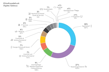 Der Betrieb der neuen automatisierten Warenlager erfordert den Einsatz von zusätzlichem Verbrauchsmaterial wie Europaletten oder Schlitzkartonagen, die neu als «Eigenbedarf» ausgewiesen werden. Sie machen mit 4871 Tonnen CO2 rund einen Drittel des gesamten betriebseigen Fussabdrucks aus. Hinzugekommen ist ferner die Position «restliche Purchased Goods and Services». Sie subsumiert alle Office-Verbrauchsmaterialien wie Drucker, Büromöbel, Bildschirme und Notebooks, die für den Eigengebrauch während der Pandemie angeschafft wurden.