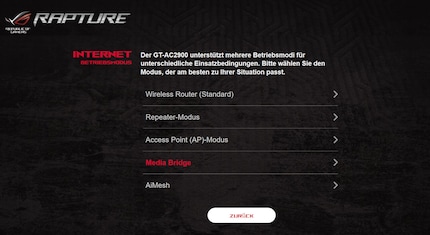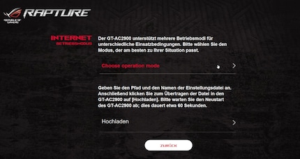 Als nächstes bekomme ich die Möglichkeit, die Routerkonfiguration durch ein vorhandenes Backup wiederherzustellen. Ist bei mir nicht vorhanden, weshalb ich einen Betriebsmodus wählen muss.