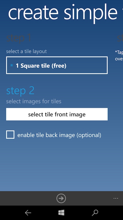 Wähle auf dem Startbildschirm der App Simple Tiles. Das bedeutet, dass wir eine einfache Kachel erstellen, die nur wenig technologische Features innehaben muss. Muss sie ja nicht, weil die eigentliche Funktion wird von Edge übernommen.