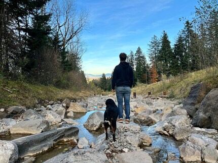 Um das magische Verschwinden durch den Eraser zu demonstrieren, nehmen wir mal dieses Foto eines Mannes mit einem Hund: