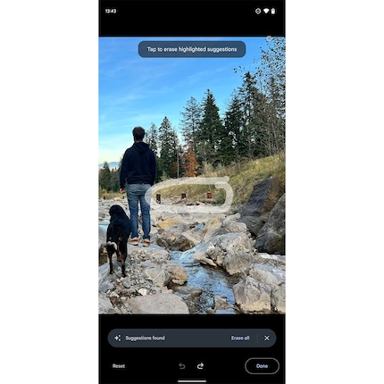 Es kann gut sein, dass der Magic Eraser nur die Hälfte einer Person ausradiert, oder komische Füller verwendet. In diesem Fall einfach die störende Stelle nochmal umkreisen. Oft rechnet die AI beim zweiten Mal – manchmal aber auch erst beim sechsten Mal – richtig.