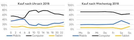 Arbeitszeiten – also von 8 bis 17 Uhr – dominiert der Computer als E-Shopping-Werkzeug. Das zeigen