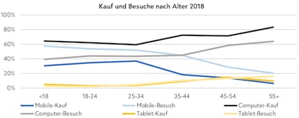mit dem Handy besuchen als mit dem Computer. Es gilt die Faustregel: Je älter ein Online-Shopper, desto