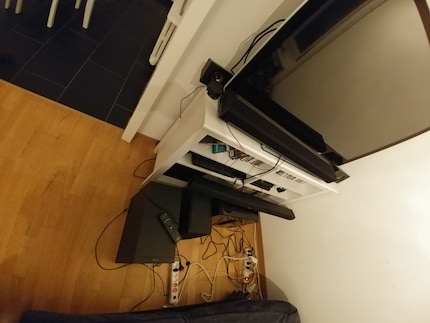 Mein Wohnzimmer während der Testphase. Die Sony Soundbar ist unter dem Sofa... mir ging der Platz aus.Bei Denon und Sonos hingegen sind die Soundbars zwar nicht zentrales Element in einem dezentralisiert konzipierten Setup, aber sie sind doch wichtig. Denn wenn du wirklich guten Sound willst, dann stell dir einfach eine Soundbar und einen Subwoofer in jedes Zimmer, das du beschallen möchtest. You’re welcome.